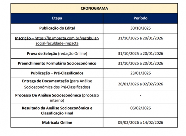 E-mail: vestibularsocial@faculdadeimpacta.com.br